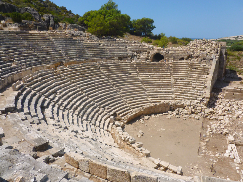 - Ликийское поселение Патара (10 км) – в этом древнем поселении тоже отлично сохранился амфитеатр, колоннады. Здесь была гавань, которая пересохла около 1000 лет назад, отчего город опустел и был покинут жителями. Ранее это был главный порт Ликийского побережья на 1000 км вокруг! Здесь отлично сохранилась триумфальная арка, построенная 2000 лет назад (почти полностью!), руины городского совета и остатки крепостной стены.