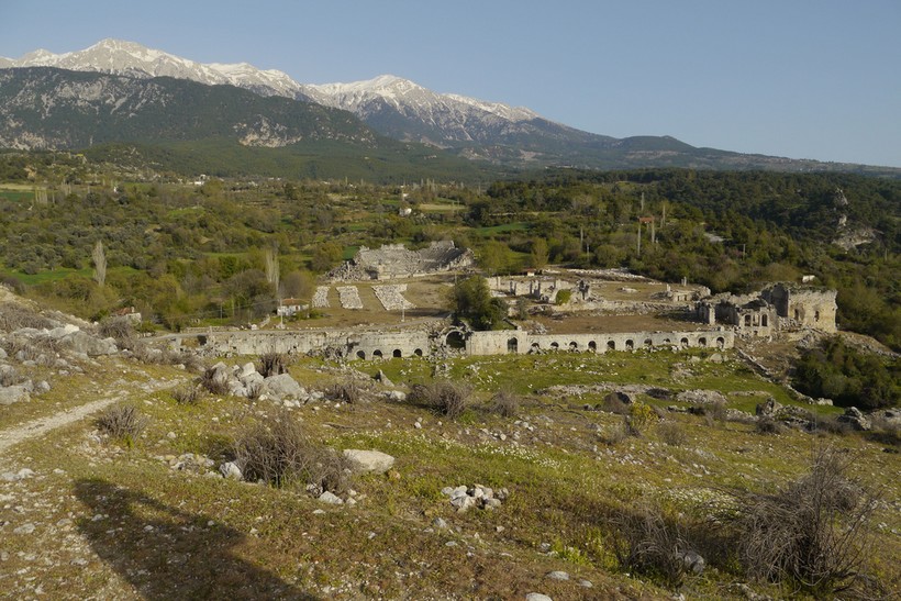 - Древний город Тлос (30 км) – здесь хорошо сохранился акрополь, колонн, руины ликийских стен и городская площадь, Беллерефонская гробница, театр и руины гимназии.
