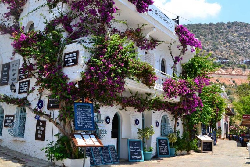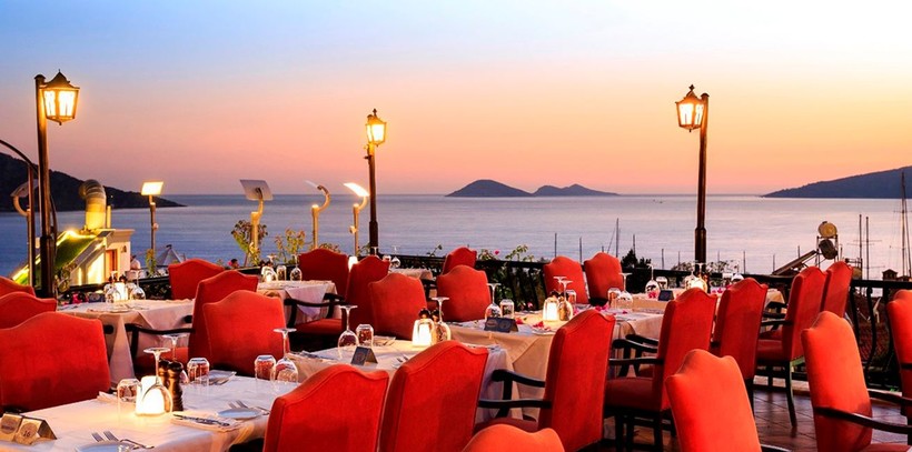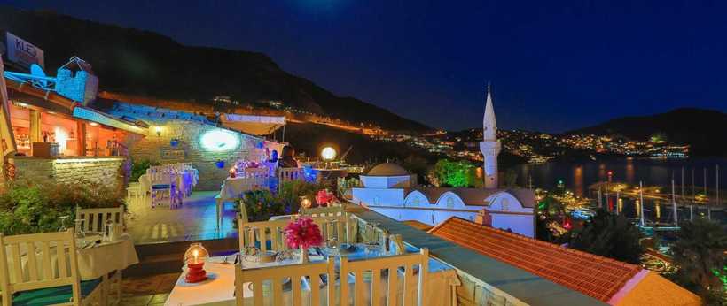 - Samphire Terrace Restaurant & Bar – один из самых дорогих ресторанов Калкана с террасой и потрясающим видом, освещением гирляндами. Время работы: с 9 утра до 1 ночи. Средний чек за ужин – от 15 USD на одного с алкоголем, двумя блюдами, закуской, салатом. Полный адрес: Kalkan Mahallesi, 1. Sokak, 07960.