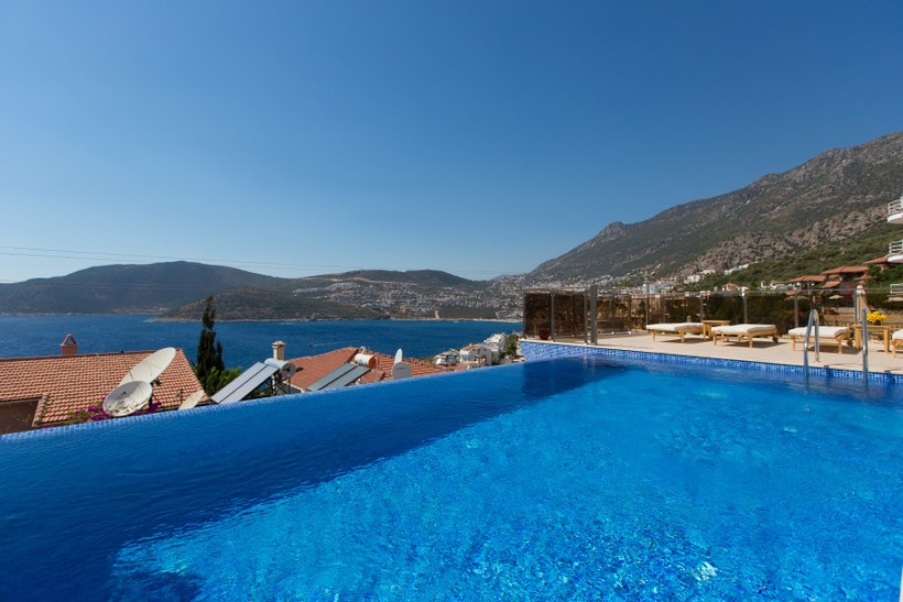- Пляж Калкан Палм Бич Клаб (Kalkan Palm Beach Club). Шезлонги: да. Рестораны, еда: коктейль-бар, закуски, обеды. Плюсы пляжа: инфраструктура, есть туалеты, кафе. Подходит для тех, кто любит тишину и покой в семейном формате, возможность прыгать с пирса в воду, есть красивые скалы, на которые можно залезть, видно панораму города. Данный пляж очень популярен у семей с детьми и находиться в зоне застройки виллами. Здесь есть водные виды спорта, горка со спуском прямо в море, любимая детьми.