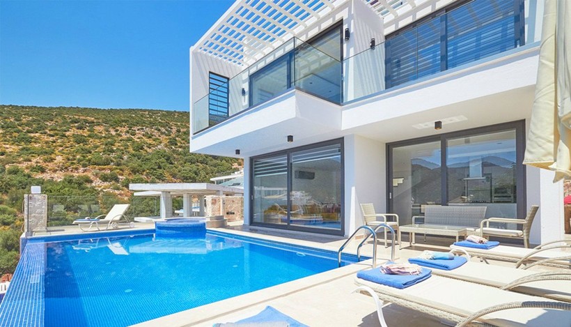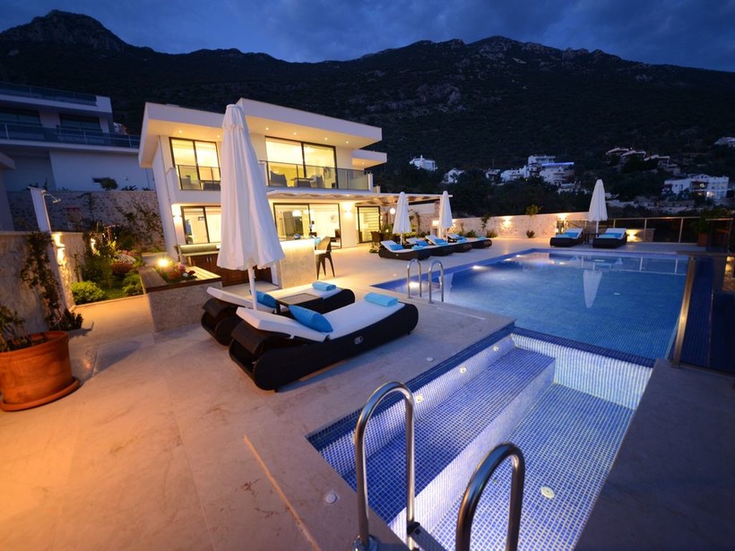 - аренда виллы с бассейном – от 60 до 600 USD в день на шестерых-десятерых человек, обычно 3 или 4 спальни. Цена зависит от расположения, но больше всего – от дизайна и года постройки. Виллы в голливудском формате – от 250 USD в день, в традиционном турецком – от 60 USD в день. Бассейн может быть на крыше или на участке, люксовые виллы от 400 USD в день. Ниже вы можете увидеть виллу по цене 150 USD в день с двумя спальнями: