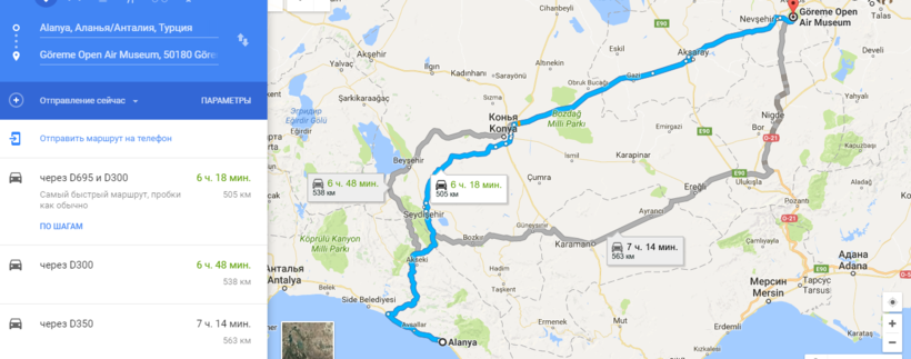 Если вы в уже где-то на курорте Анталии (Белек, Сиде, Кемер, Аланья, Текирова, Бельдиби, Махмутлар), то добраться можно на машине или экскурсионным туром (туры ищите здесь). Самолётом придётся через Стамбул, что в итоге по времени будет также или дольше, чем на машине прямиком из Анталии.