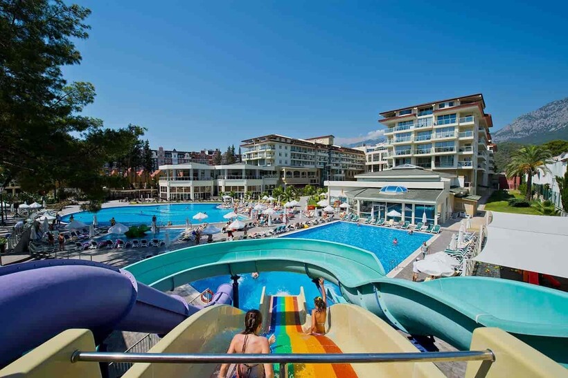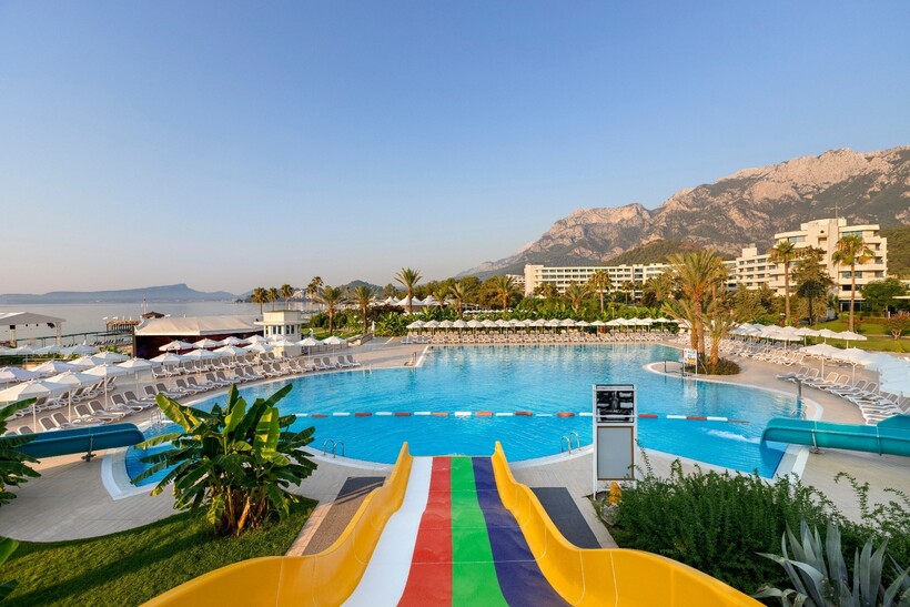 Эта гостиница расположена на берегу моря и занимает территорию размером 250000 кв. м. Многие путешественники, говоря про про лучшие отели Кемера (5 звёзд) для отдыха с детьми, называют именно его. На огромной зелёной территории расположено все необходимое для детского и семейного отдыха: