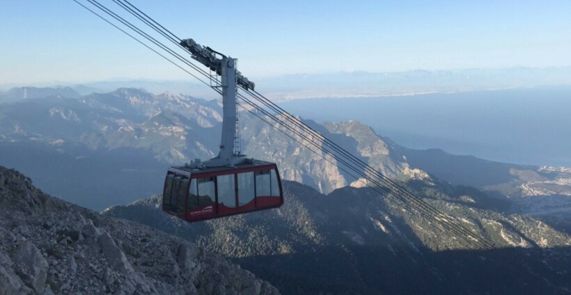 Через каждые 30 минут большие кабины отправляются на подъем к вершине Тахталы (Олимпос). В фуникулере, обеспечивающем панорамный обзор, помещается до 80 человек. Поездка по канатной дороге «Олимпос Телеферик» длится 10 минут, за это время туристы успевают сделать фотоснимки гор, лесной зелени, моря. С набором высоты пышная растительность сменяется редкими хвойными деревьями, выше 1900 м растения исчезают, видны только скалистые горы. Зимой они покрыты снегом. Окружающая местность — это Национальный парк «Олимпос Бейдаглары». С высоты иногда можно увидеть туров, рысей, барсов, орлов. К обеим станциям канатной дороги, нижней и верхней, животные не приближаются, опасаясь скоплений людей.
