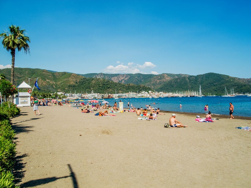 Побережье турецкого Мармариса тянется широкой песчано-галечной полосой вдоль Эгейского и Средиземного морей. Расположенные в тихих бухтах и укрытые горами, пляжные зоны курорта надежно защищены от ветра, море здесь спокойное и чистое. Многочисленные туристы заполняют курорты в этой части Турции с июня по октябрь, но первых отдыхающих на побережье можно увидеть уже в апреле. Подробно о том, какие пляжи в Мармарисе предпочесть для молодежного или уединенного семейного отдыха — в нашем обзоре.
