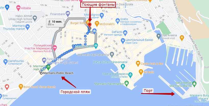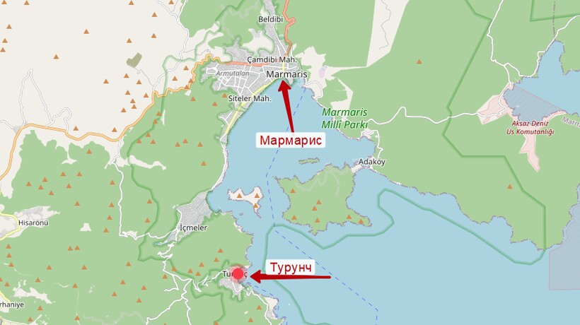 ПОЛЕЗНО. Доехать до пляжной зоны Турунч можно из Мармариса за полчаса на маршрутках (отправляются от ТЦ Tansas) или за 50 минут на водном такси (отходит от причала у памятника Ататюрку).