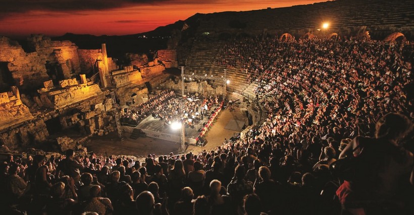 - Международный Фестиваль Оперы и Балета (ULUSLARARASI ASPENDOS OPERA VE BALE FESTİVALİ )в древнем городе Аспендос тоже проходит недалеко от Сиде. Удивительное впечатление неземного волшебства и пребывания на другой планете обеспечено каждому, кто посмотрит несколько завораживающих выступлений международно известных балетных трупп и пару опер. Действо происходит под закатное солнце в этом античном городе, в котором люди смотрят выступления уже несколько тысяч лет. Стоимость билета — всего лишь 50 USD на один вечер, дети до 12-ти проходят за полцены. Сайт фестиваля. В 2017 году проводится с 23 августа по 7 сентября.