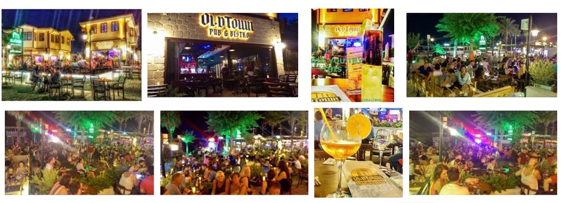 - Old Town Pub & Bistro — отличное местечко для вечернего отдыха в европейском стиле. Очень популярно среди англичан и немцев. Время работы: с 10:00 до 23:00. Стоимость алкоголя — от 6 USD. Полный адрес: Mah. Liman Cad, Side. Ниже мой коллаж фотографий из этого паба: