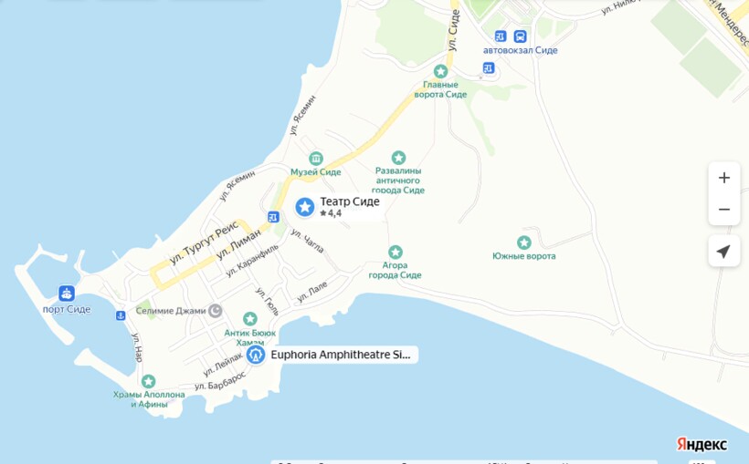 Адрес античного театра в Сиде: Antik Tiyatro 07330 Side/Antalya
