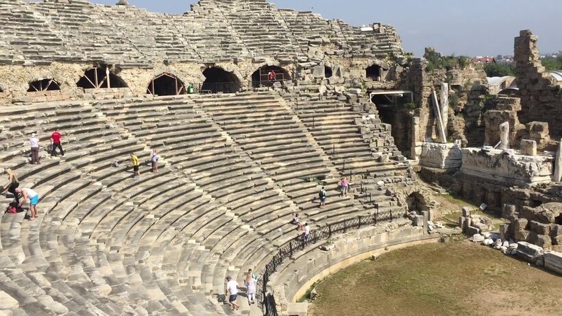 Добраться до театра из другого города можно на любом автобусе, который идет по главной автостраде до Сиде. В разгар курортного сезона легко заказать автобусную экскурсию в Сиде из любого города в этом регионе.