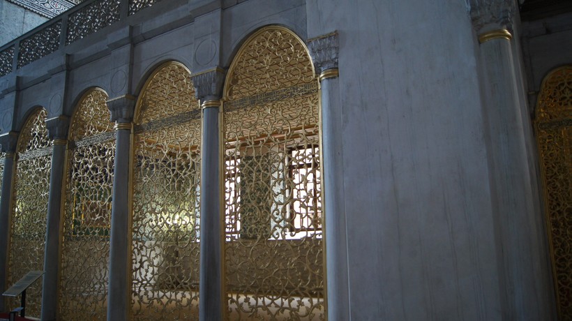 Маленькая «комнатка», в которой султан мог участвовать в ритуалах, не будучи замеченным публикой. Высокие резные решетки укрывали его не только от глаз простого народа, но и от недоброжелателей — обеспечивали безопасность.
