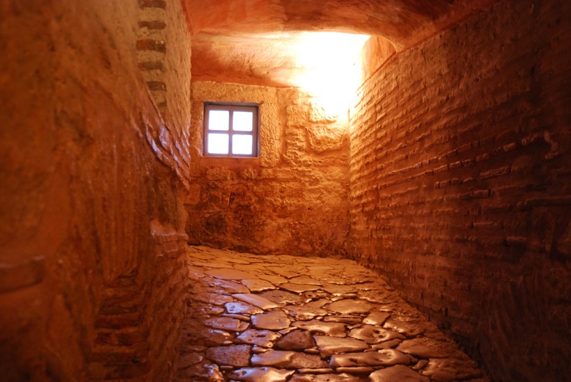 По широкому проходу поднимитесь на второй ярус, который использовали церковные синоды и где совершали богослужение женщины. Обратите внимание на интересный наклон дороги — он был рассчитан специально для того, чтобы добиться максимальной плавности при движении, когда императрицу несли на паланкине (носилках на двух жердях).