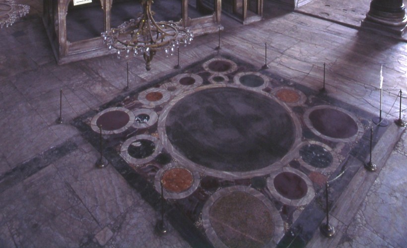 Чтобы его найти, встаньте под центром купола и посмотрите направо. Это большой квадрат, выложенный цветным камнем, в центре его — круг, на который ставили трон для вновь провозглашенного императора.