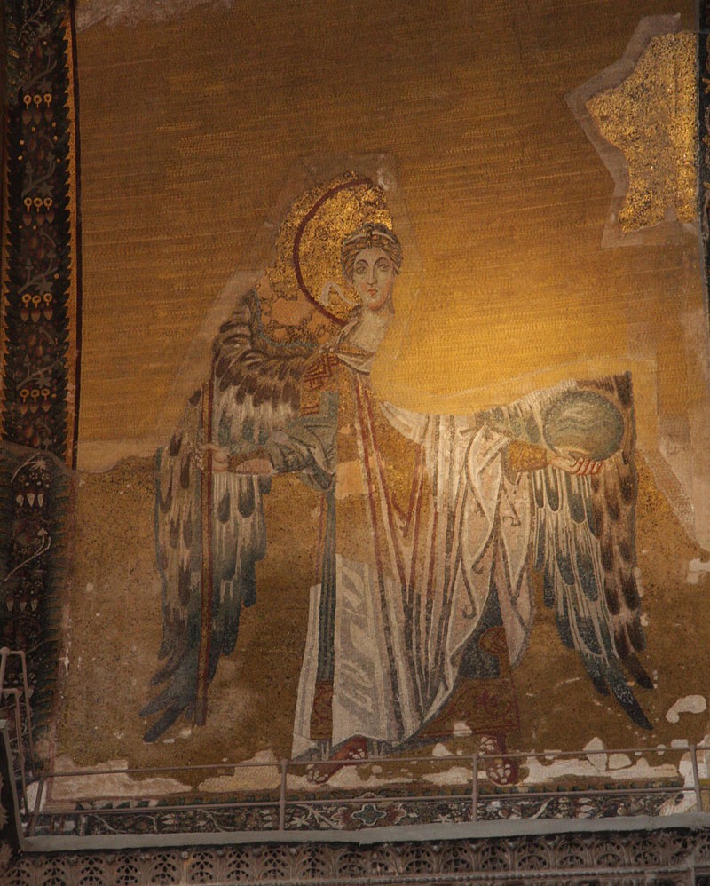 С точки зрения иконографии интересны мозаики периода правления императора Льва VI (конец IX-начало X века), когда фигурные композиции заменили изображение креста, украшавшее восточную стену нарфика в эпоху Юстиниана (нарфик или нартекса —входное помещение, которое примыкает к западной стороне храма).
