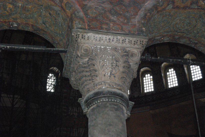 На капителях колонн, расположенных по периметру основного пространства, можно увидеть монограммы императора и его супруги.