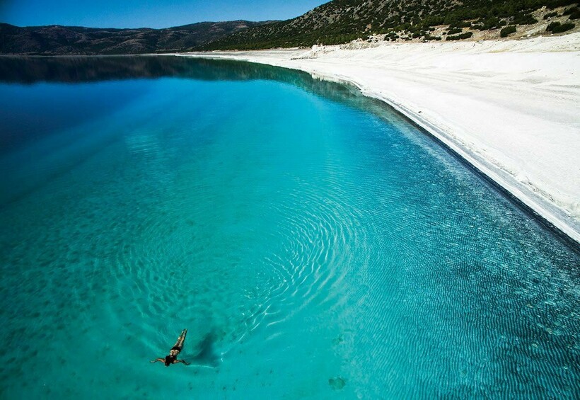 Красота Турецких Мальдив очаровывает туристов еще до прибытия к достопримечательности. Взглянув на фото озера Салда, каждый, кто отправляется в Турцию, рад посетить это удивительное место. Давайте разберемся, в чем уникальность этой природной достопримечательности, а также узнаем, как добраться в Турции к озеру Салда из Аланьи и Антальи — самых популярных турецких курортов.