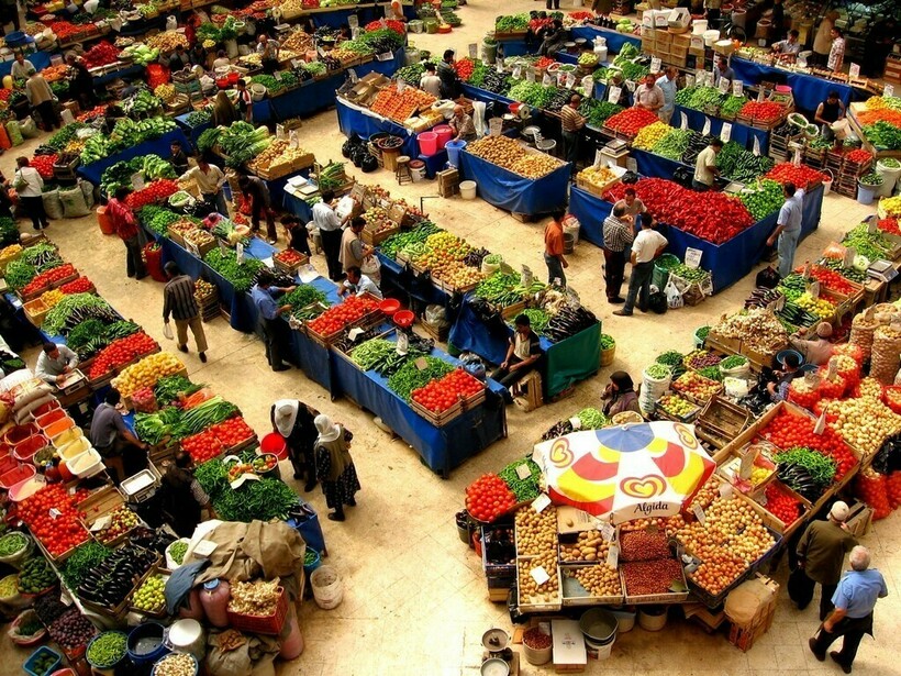 Стоимость минимальной продуктовой корзины для семьи из четырех человек, по мнению конфедерации профсоюзов Турции, составит 2 736 турецких лир в месяц (21 000 рублей). Продукты в Турции стоят недорого относительно среднеевропейских цен, в некоторых регионах цены ниже, чем в Стамбуле, Анкаре или популярных туристических городах. Покупать продукты лучше на рынках и сезонных ярмарках. Отличаются цены на алкоголь и сигареты, в Турции они стоят в 3–4 раза дороже, чем в России.