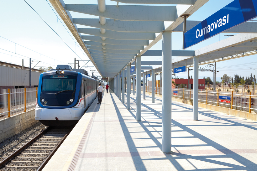 Можно использовать поезд İzban, охватывающий большую часть центра города.
