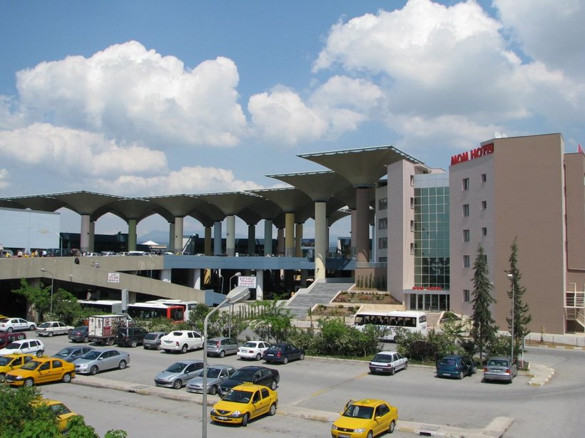 Автовокзал, или otogar, находится в шести километрах на северо-востоке от города, хотя существует множество dolmuş, которые доставят вас туда из центра. Автовокзал огромный, в нем есть интернет- кафе, множество мест, где вы можете перекусить и утолить жажду, а также огромное количество агентств, которые продают билеты на междугородные автобусы и всегда извещают пассажиров по громкой связи об их отправлении. Также внутри есть платный туалет.