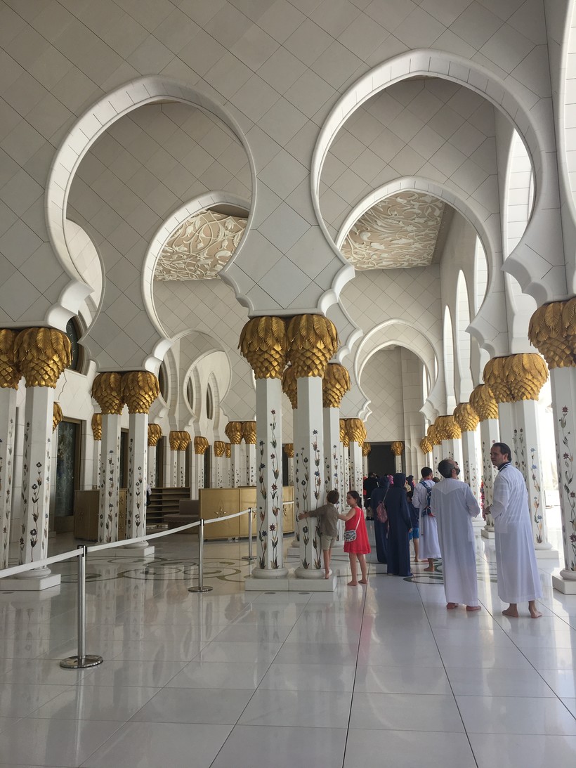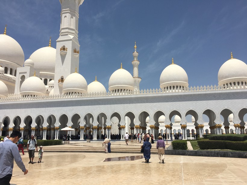 Честно говоря, я не думала, что уже утром увижу там массу народа. Дело в том, что в Абу-Даби прилетают тысячи туристов, чтобы увидеть это творение человеческих рук. Соответственно, каждый день территория мечети наполнена туристами.