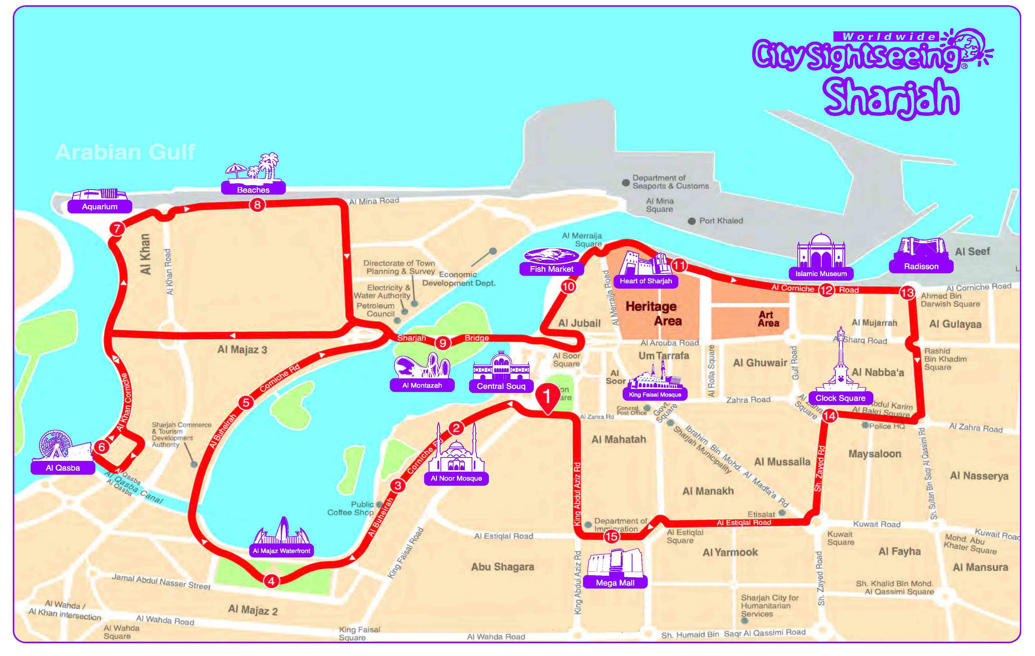 В списке популярных карт можно посмотреть карту Шарджи на русском с достопримечательностями. Для скачивания карт достаточно щелкнуть мышкой по изображению.