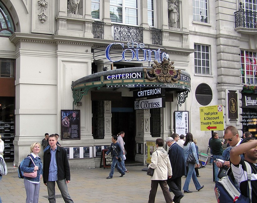 - Театр Критерион (Criterion). Известен тем, что это первый целиком подземный театр в Лондоне. Дневные спектакли обычно начинаются в 14:30 или 15:00, а вечерние в 19:30. Цены на билеты на самом деле очень разнятся. На один и тот же спектакль в зависимости от выбранного места можно заплатить за билет от 23.3 € (20 £) до 81.8 € (70 £).
