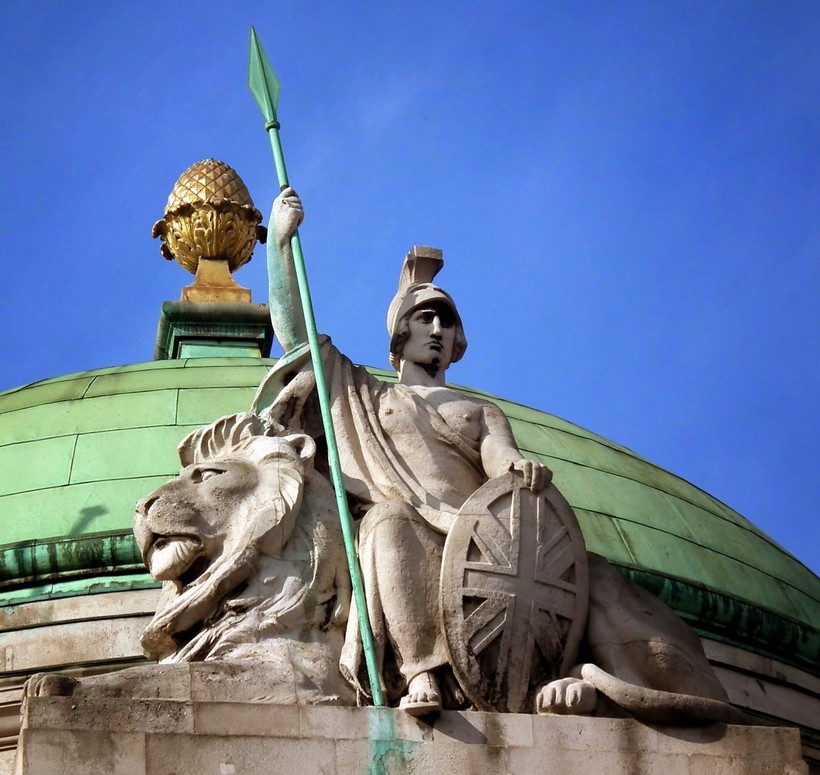 - Каунти-Файер-Офис (County Fire Office) и Суон и Эдгар (Swan & Edgar). Не забудьте задержаться возле этих красивых зданий. Они находятся на Риджент-стрит и составляют часть архитектурного ансамбля площади Пикадилли. Обратите внимание на фронтон Каунти-Файер-Офис. Там установлена великолепная скульптура «Британия» — воинственная женщина верхом на льве, в руках у которой щит и трезубец.
