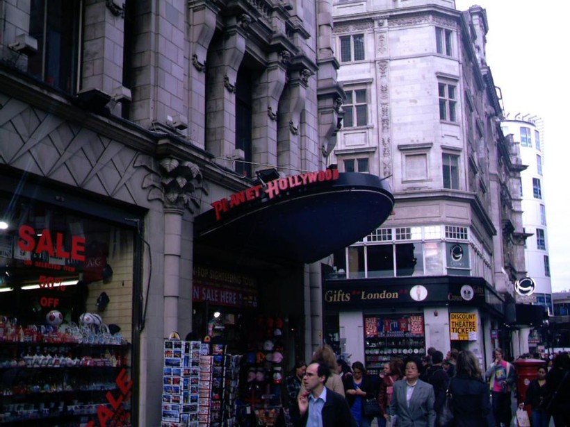 - Ресторан «Планета Голливуд» (Planet Hollyvood). Любители памятных фото могут сделать снимок на фоне этого известного бренда. Сама я туда не заходила, но меню из интереса полистала. Ну что я скажу? Это центр города и это «Планета Голливуд», поэтому меньше, чем 11.60 € (10 £) за простое блюдо даже не рассчитывайте :).