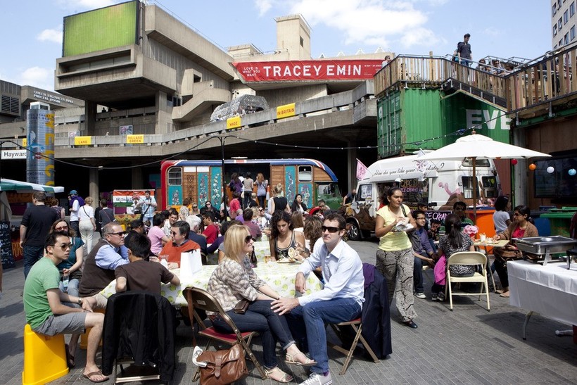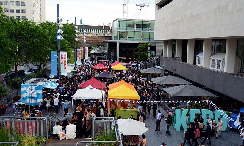 Классическая ярмарка с нарядными палатками-шатрами, цветными флажками и громкой музыкой, - вот что ждет вас на Southbank Centre Market.