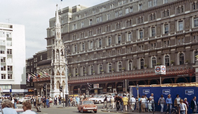 Собственно, это «кольцо» и носило имя Чаринг-кросс — «крест у деревушки Чаринг». Дело в том, что здесь находился один из 12 поклонных крестов, установленных в XIII в. Эдуардом I в память об усопшей супруге Элеоноре Кастильской. По дороге в Вестминстерское аббатство гроб с телом королевы останавливался в 12 местах, где и возникли потом поклонные кресты. Через четыре столетия во времена Английской революции крест Элеоноры снесли, и на этом месте сначала казнили цареубийц, а потом воздвигли статую казненному королю Карлу I. Впрочем, копию креста позже, в ХІХ в., возведут перед железнодорожным вокзалом Чаринг-Кросс, что рядом с Трафальгарской площадью.