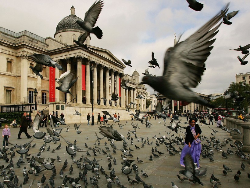 Не только бронзовые звери являются символом Трафальгарской площади, но и самые обычные голуби. Говорят, что одновременно тут могло находиться до 35 000 птиц. Стаи сизокрылых в какой-то момент стали просто брендом, и, как на площади св. Марка в Венеции, здесь можно было прикупить за фунт-другой корм для голубей. Ну, согласитесь, какой кадр: ты и вокруг тебя голуби!!