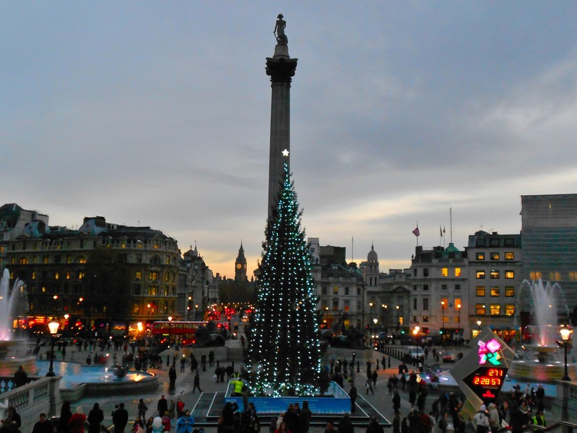 По традиции с 1947 г. благодарные норвежцы присылают самую лучшую ель своим освободителям. Иногда, правда, елку сдувает, но это уже частности. Дерево появляется на площади в ноябре и открывает рождественский сезон в Лондоне. (Ярмарку на площади обычно не устраивают: ларьки со всяческой снедью, огромный каток и ледяные фигуры поселяются на этот время в Гайд-парке, где открывается «страна чудес»).