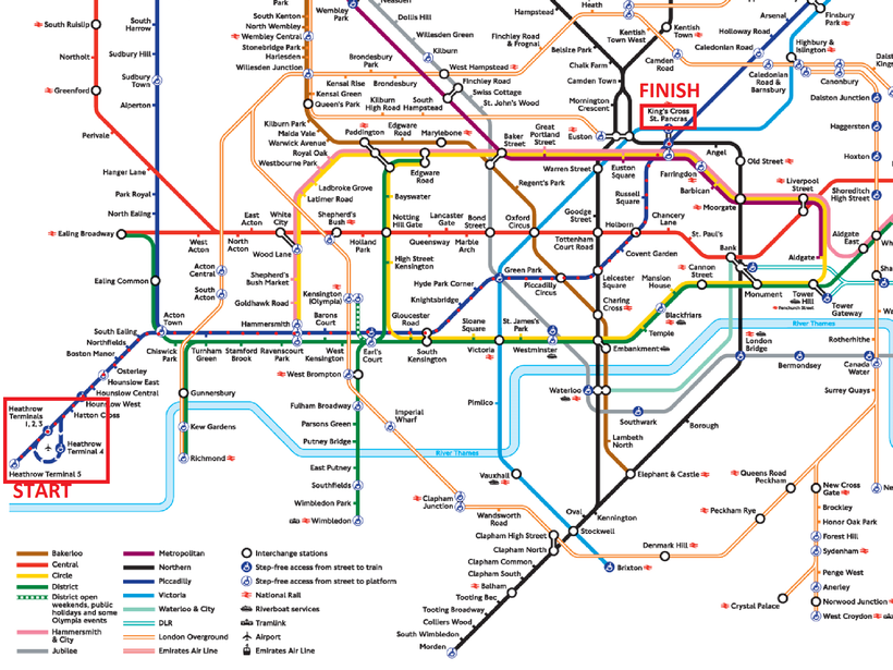 Из аэропорта London Heathrow нужно будет доехать до St. Pancras Station. Удобнее всего доехать на метро, как англичане его называют — tube, так как это прямая темно-синяя ветка «Пиккадилли» (Piccadilly), и метро выходит прямо на ж/д станцию. Стоимость проезда будет в районе 7 USD. Есть разные типы билетов, если вы едете прямиком на станцию, то выбирайте четко на St.Pancras, если же вы хотите провести какое-то время в Лондоне, то дешевле будет взять билет на день.