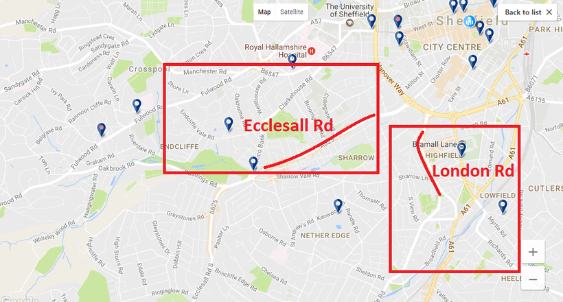 Все, что за пределами 3-х зон, будет дешевле, и если вы не против пеших прогулок или вызова такси, то эти варианты тоже приемлемы. Однако крайне советую не селиться в отелях и хостелах на London Road, эти районы не такие безопасные. А вот Ecclesall Road наполнен магазинами и от этой улицы близко до близлежащих парков.