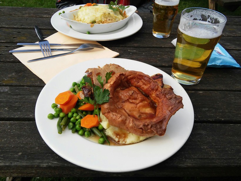 - Yorkshire Pudding — наверное самое британское, что можно придумать. Я, кстати, впервые попробовала блюдо в Peak District, это что-то домашнее и традиционное. Сам пудинг — тесто, в котором запекается мясо, подается обычно с пюре и отварными овощами. Пусть вас не путает слово пудинг, к десерту это блюдо никакого отношения не имеет.