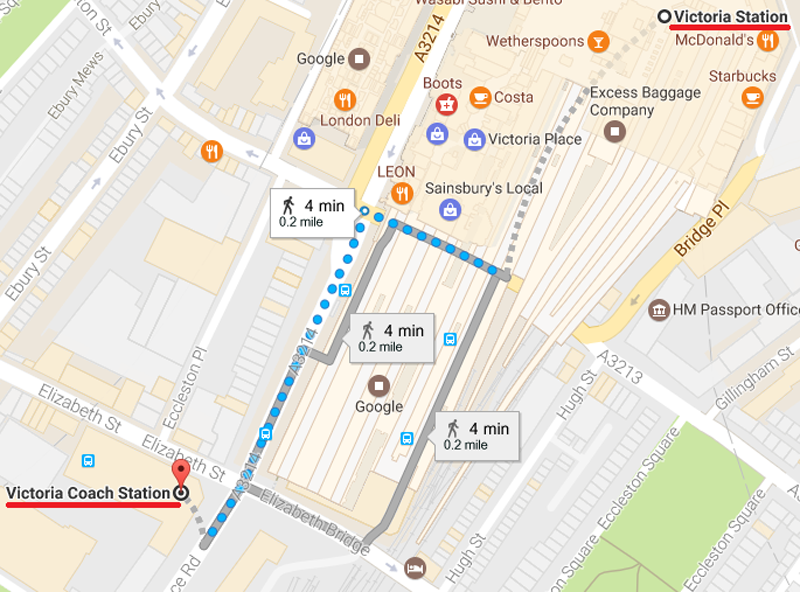 Из Лондона вам нужно будет доехать до Victoria Coach Station (станция метро Victoria). Из Heathrow можно доехать на метро, но нужно будет сделать пересадку с синей ветки «Пиккаддили» (Piccadilly) на зеленую ветку Дистрикт (District) либо на станции Hammersmith, либо на Earl's Court.