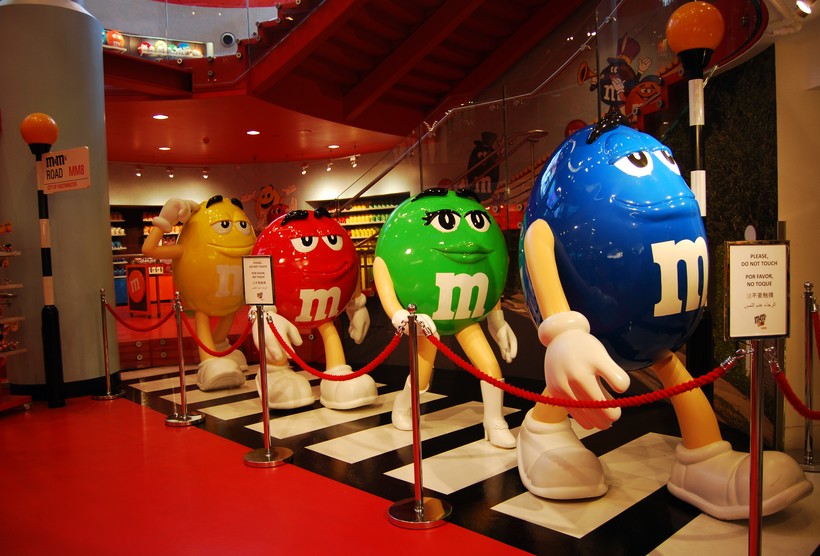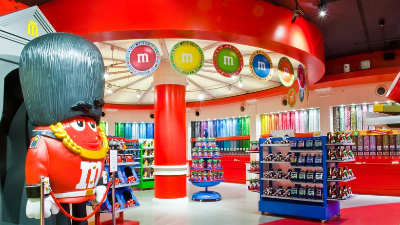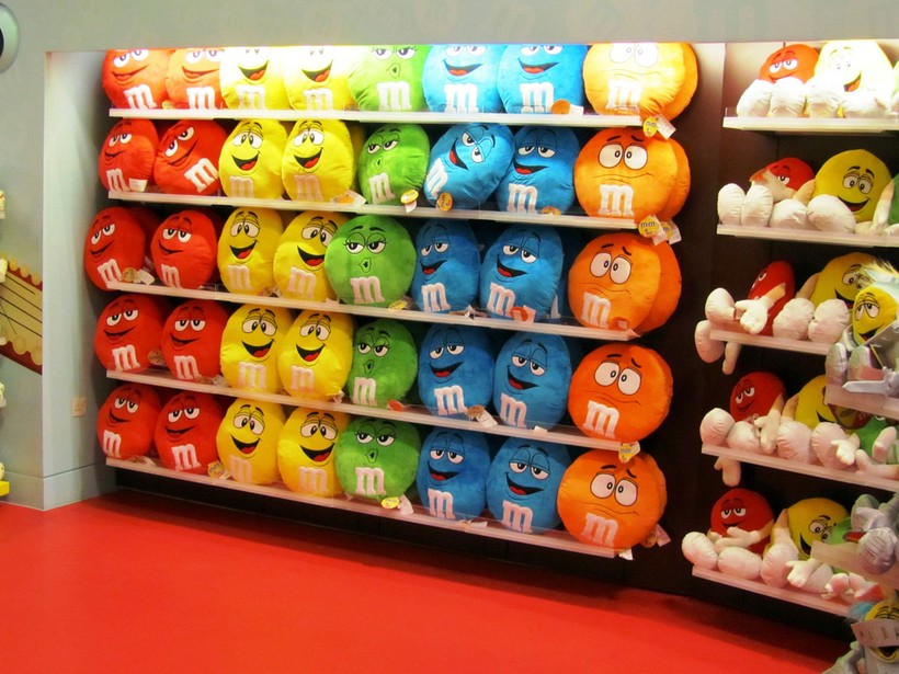 Неподалеку от Cool Britannia по адресу Leicester Square, 1 расположился магазин M&M's World. Это действительно целый мир забавных персонажей: Красного, Желтого, Зеленой (она девочка), Синего и Шоколадного. Именно в этих основных цветах вас встретят сувениры, занимающие целых 4 этажа.