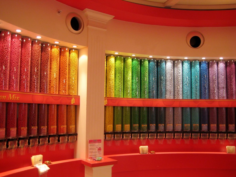 На каждом этаже есть фан-зоны, в которых можно сфотографироваться с Желтым или Синим или определить ваш цвет драже. Кстати о драже. Вы же не думаете, что их всего 5 цветов? Раньше я думала именно так, но оказалось, что они бывают всех цветов радуги! Гламурный розовый, изящный бирюзовый, изумрудно-зеленый, с арахисом или без… А еще шоколад бывает не только молочный, но и темный! Поначалу даже теряешься, потом появляется детский восторг.