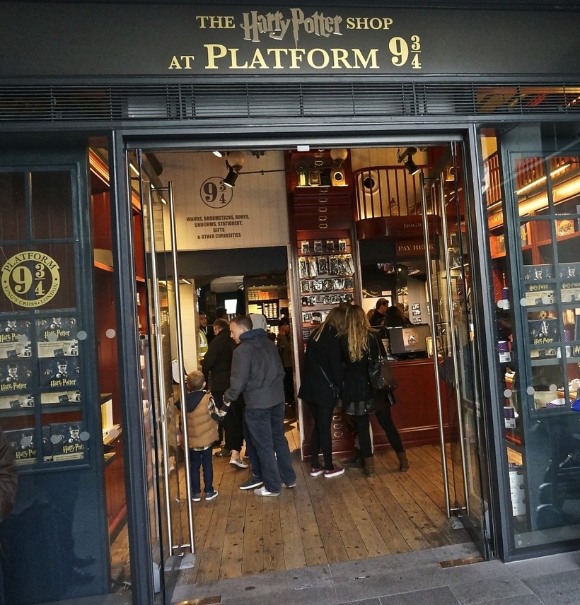 Магазин расположен прямо на вокзале King’s Cross. Внутри весьма тесно, отчего чувствуешь себя как в Кривом переулке. В продаже униформа всех 4 факультетов (свитера, жилеты, галстуки), перья, чернила, кружки. Бонусом там же около магазинчика вы найдете встроенную в стену тележку, около которой можно сфотографироваться в шарфе Гарри Поттера. Помощник, дежурящий рядом, выдаст и подержит вам красно-желтый символ Гриффиндора, пока второй вас фотографирует. Фотографию можно получить в магазинчике за 11 EUR (9,5 GBP). Впрочем, шарф дадут, даже если вы снимаете на свою камеру, бесплатно.