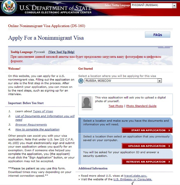 Весь процесс подробно описан на сайте Посольства США в РФ. Для начала, нужно оплатить консульский сбор на сайте Посольства. Когда я получала визу, сбор составлял около 160 USD. На сайте указывается стоимость и в долларах, и в рублях по курсу посольства.