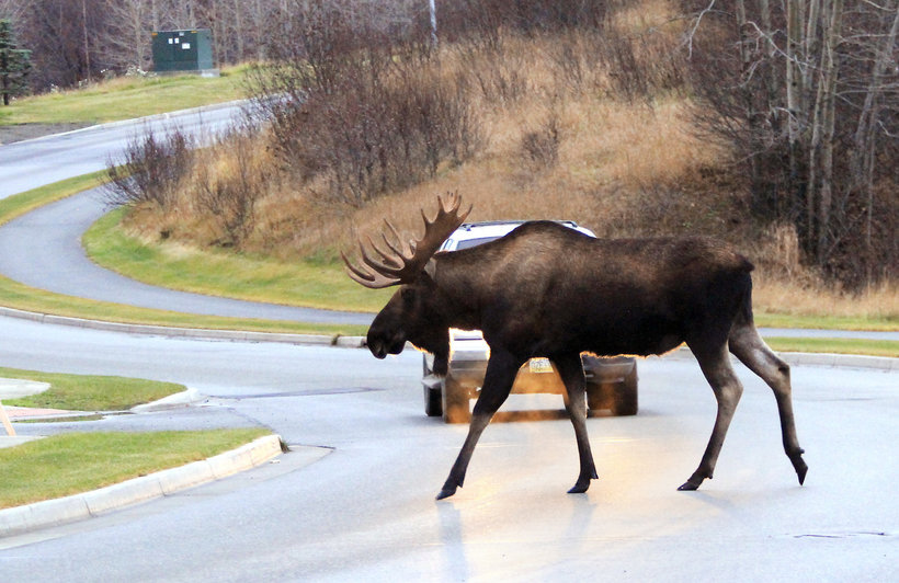 Главная же проблема, связанная с лосями, заключается в том, что они выбегают на дорогу. На трассах, пролегающих через лесную полосу (а их около 80% на Аляске), следует быть предельно внимательными. На дорогах даже есть знаки, предупреждающие о том, что дорогу может перебегать лось. Столкновение с достаточно крупным животным может оказаться смертельным не только для лося, но и для людей в автомобиле. Если вы сбили лося, нужно немедленно сообщить об этом в ближайшее отделение полиции, иначе вас ждет крупный штраф.