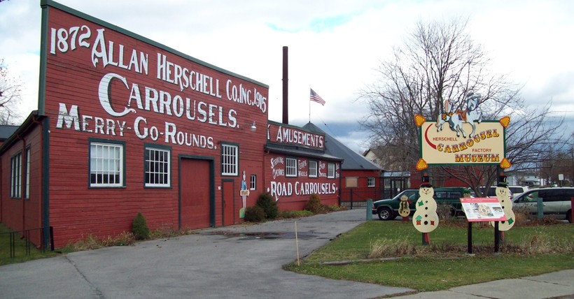 Музей Карусельного Завода Хершелл, Томпсон Стрит 180, Северная Тонаванда, +1 716 693-1885. Время работы летом: Пн. – Сб. с 10:00 до 16:00, Сб. с 12:00 до 16:00; время работы весной и осень: Вт.-Вс. с 12:00 до 16:00; зимой музей закрыт. Северная Тонаванда, бывший порт пиломатериалов на канале Эри, в 1915 году стал домом для компании Аллан Хершелла, крупнейшего производителя аттракционов, особенно каруселей, в Америке. Хотя компания закрылась в 1970 году, музей карусельного завода до сих пор находится в бывших заводских корпусах, демонстрируя экспонаты по истории компании Хершелла и аттракционов в целом 15 000 посетителей ежегодно. Первая карусель Аллана Хершелла 1916 года - главный экспонат музея. Специальные программы, предлагаемые музеем, включают в себя деревообрабатывающей курсы для начинающих и продвинутых, пешие и велосипедные прогулки от заводского комплекса через исторический центр города Северная Тонаванда к берегу старого канала Эри. Стоимость билета $5, для пенсионеров - $4, для детей - $2.50.
