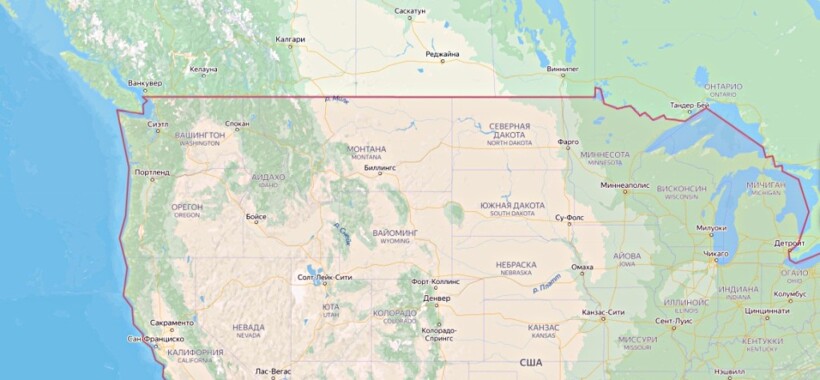 Американо-канадская граница с самой большой в мире протяженностью (8891 километр) в восточной части проходит по прямой линии (49-й параллели), начинаясь у американского города Беллингхем в штате Вашингтон.