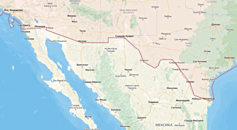 Общая протяженность границы составляет 3145 километров. С американской стороны с Мексикой граничат штаты: