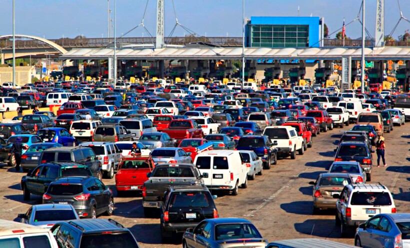 Выезд из США не занимает много времени. В очереди на въезд с мексиканской стороны автомобилисты стоят не меньше часа.