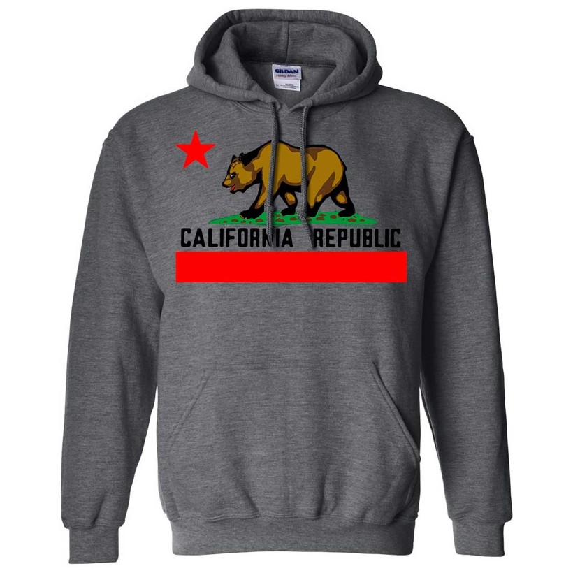 Толстовки, кепки и другую одежду с символом штата Калифорния — медведем (стоимость от 5 до 50 USD).