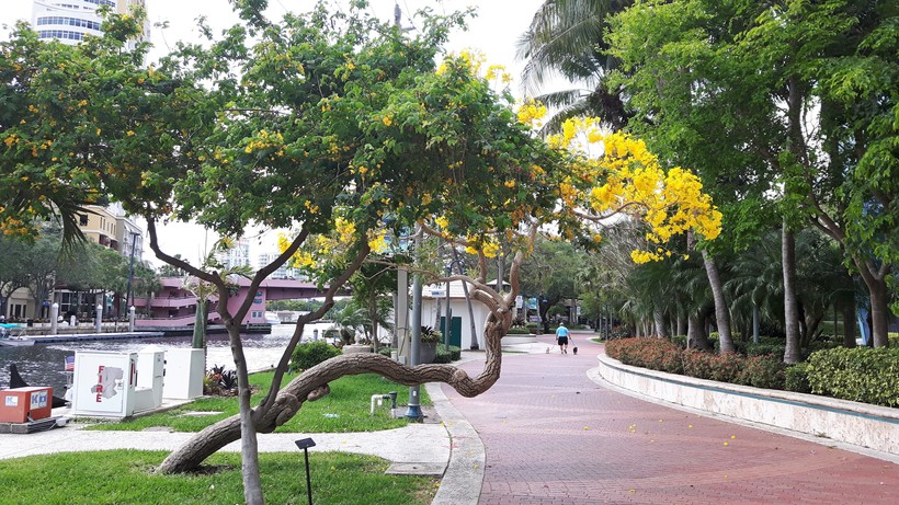 Ривервелк, напротив же, спокойное место для неспеших прогулок. Пройдя всю улицу пешком, я была рада посидеть на лавочке и полюбоваться на проходящие мимо лодки. Здесь же можно прокатиться на водном такси или экскурсионной лодке по каналам города. Набережная тянется от South Avenue of the Arts и до Southeast 5th Avenue плавно переходя из одного городского парка в другой. Я встретила тут милое семейство уточек и множество ящериц.