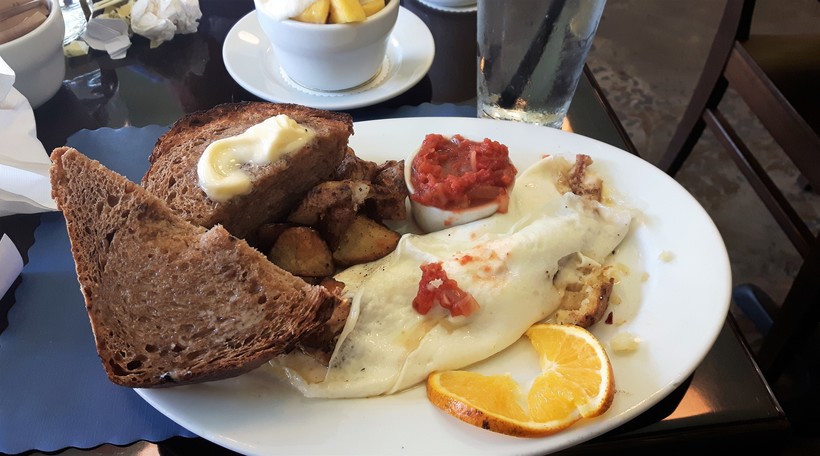 Цены на еду, на самом деле не очень зависят от их местоположения. Завтрак на человека (два яйца, картошка, хлеб, сок, какао или кофе) около 12 USD.