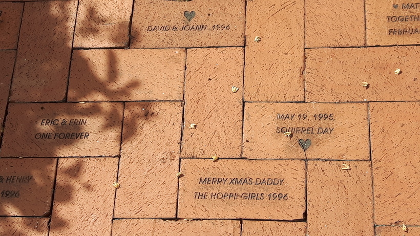 А еще на Ривервелк тротуар выложен кирпичиками с именами и надписями. Местные жители говорят, что можно заказать и себе такой кирпичик, например, с признанием в любви.