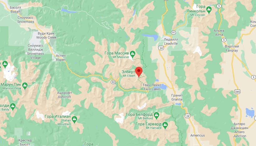 Расположение горы Эльберт на карте